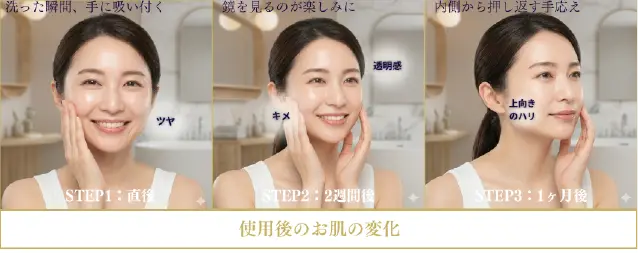 - エイジングケア※を底上げ:潤いを「与えて」、成分を「守る」の黄金2ステップ。