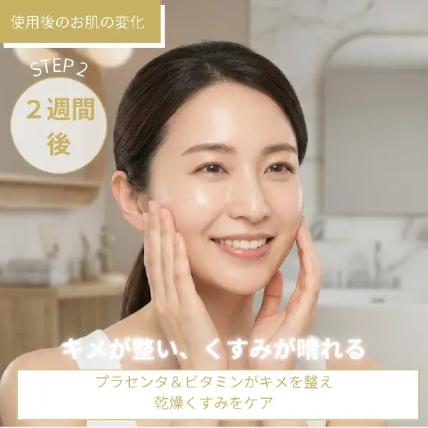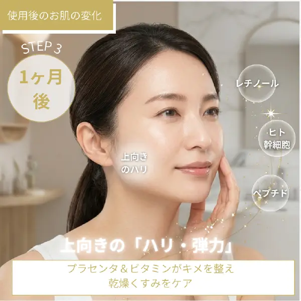 プラセンタ&ビタミンCがキメを整え、乾燥くすみをケア※。※潤ってキメが整った状態