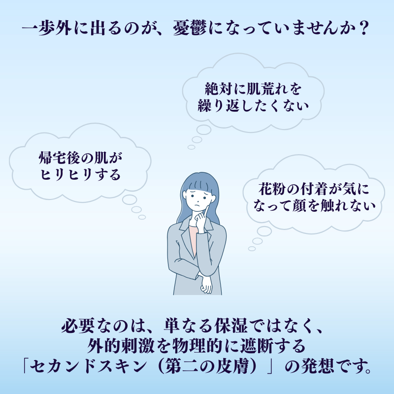 乾燥や花粉、摩擦などの外的刺激で、季節の変わり目は肌がゆらぎやすくなりがち。